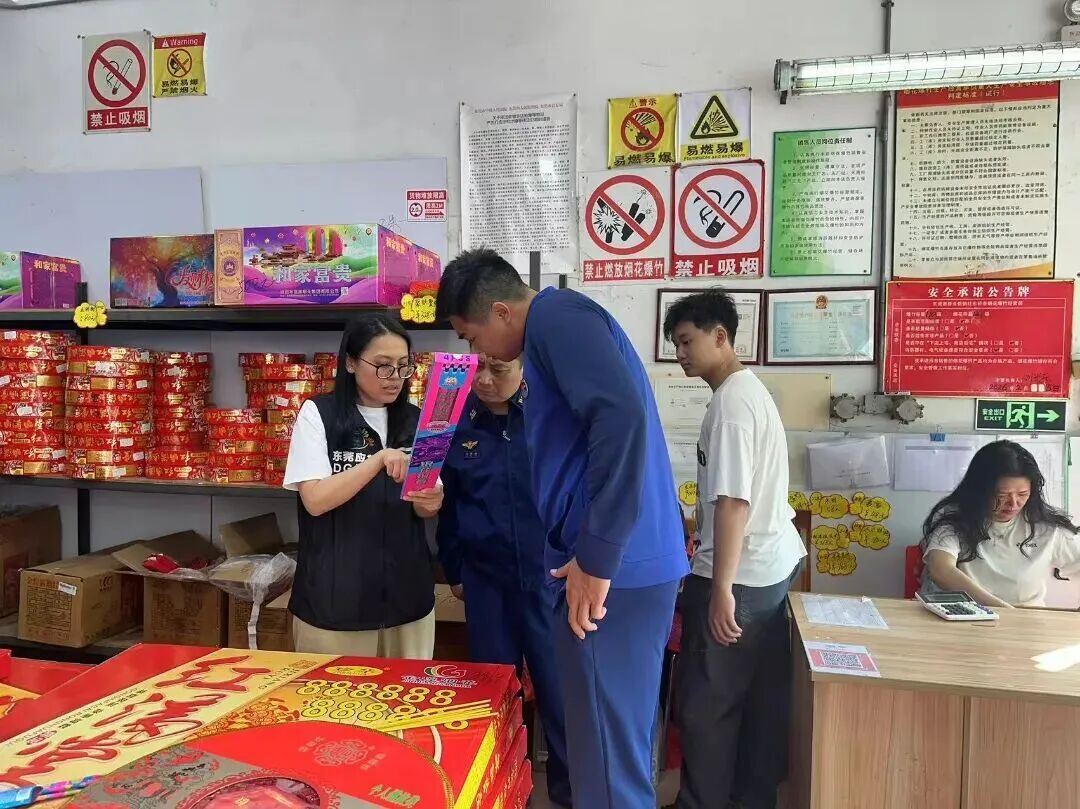 飞来峡镇前往辖区内经营场所开展烟花爆竹检查。