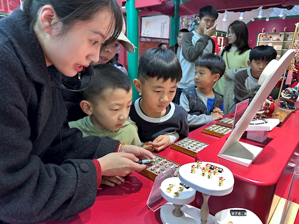 为应对春节消费高峰期,黄欣雨每天早早到岗,提前整理货品、熟悉库存,全力保障服务质量。她说,文创产品是传递名楼文化的重要载体,每一件产品都承载着游客对滕王阁的美好记忆。看到小朋友驻足围观,她温柔俯身,用孩子易懂的语言讲解产品内涵。“很多小朋友用压岁钱购买文创礼物,送给爸爸妈妈。能让游客把滕王阁的文化与新春的年味一同带回家,累点都值得。”黄欣雨说。